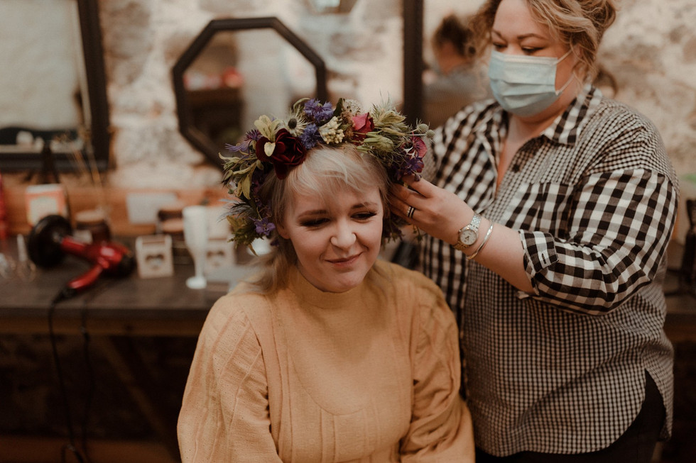 The One With The Mustard Outfits, Flower Crown Of Dreams, And a DIY Masterpiece Lauren and Leonie created an absolutely incredible wedding that we are still not over. The level of detail in this day was mind blowing and we feel so incredibly lucky we got to capture it all. Not only did the wedding look amazing but these two were so sweet and an absolute joy to photograph which stretched out to their kind and welcoming guests too. Claire Digance did a fantastic job of the ceremony making us all laugh and feel so connected to these two and their story. ”There was a second date and a third date and everyone knows what happens on third dates, right? *wink wink* Lauren arrived at Leonie's house, preemptively smooth and exceptionally moisturised, so oily that she slipslid along thefloor like Jabba the Hut's well-lubricated lesbian cousin. It is worth mentioning that by this point, Date#3, they'd not even held hands.” We also cant not mention how fantastic the florals were at this wedding. Tomnaha Flowers outdid theirselves with the arch display, table decor and those AMAZING flower crowns! Swoon! What a day ❤️ Cannot thank Lauren + Leonie enough. Here is a wee selection of our favourites.
