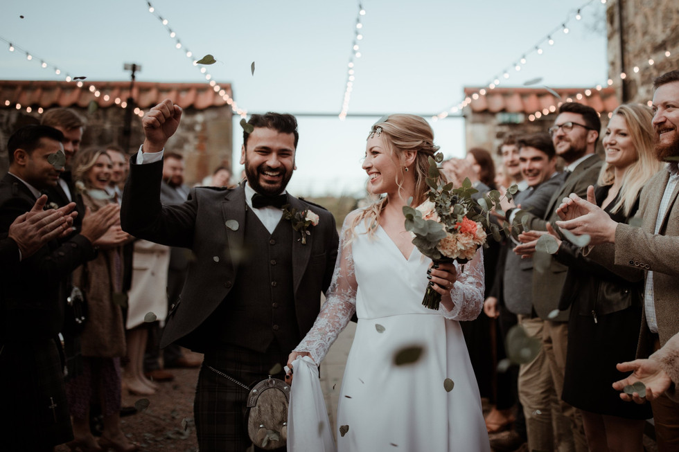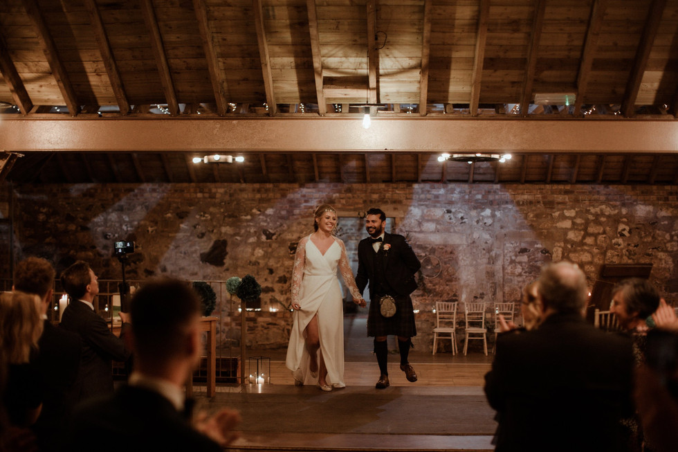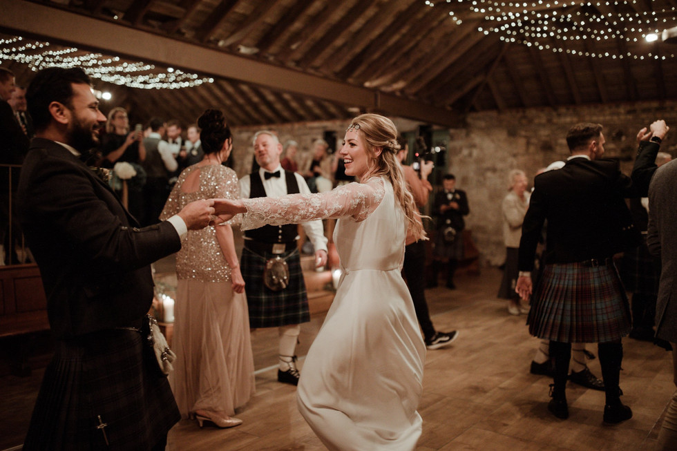 We were back at The Rhynd for Catherine and Kaiser’s wedding and what a brilliant day this was! The Rhynd suited these guys perfectly as they had such a chilled day in a beautiful setting. The wedding party all got ready at the farm house to the side of the venue. This house had such a lovely and rustic feel to it which was a joy to capture in. We are such suckers for some good light and that window light was a dream! Catherine kept a lot of elements in the family and made use of her family’s skills. Her dress was handmade by her mum which was a lovely touch and meant her dress was exactly how she wanted it. Her florals were by her gran and her stationery was designed by herself. A huge perk to this venue is that Tentsmuir forest and beach is just a 10 minute drive away. We were so lucky to catch the setting winter sun before we hopped over in our car and got the last of the autumn colours in the forest. We laughed the whole way through Catherine and Kaiser’s photo session and had such a cracking time photographing them. They did so well! After a pretty wonderful buffet supplied by A&D Bar Services, the party started with JimJam Ceilidh Band. It is still a novelty getting to witness and capture a floor of dancing people again. You can’t beat it!